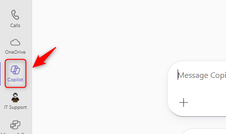 (6) You should be directed to a chat welcome page similar to the screen shot below. Locate the message input box, type your question, request or prompt into the field. Press enter or select the send icon to submit your message. Copilot will respond in the chat pane.